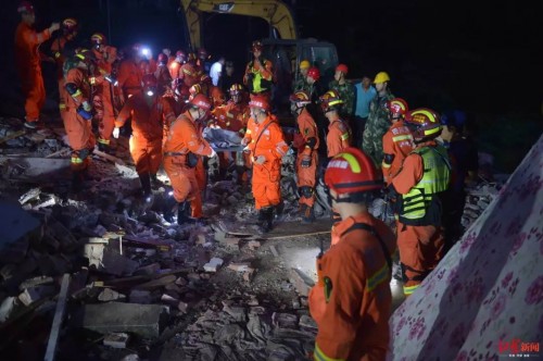 6月18日,在长宁县双河镇,救援人员搜救地震中被困人员。新华社发(陈锐 摄)
